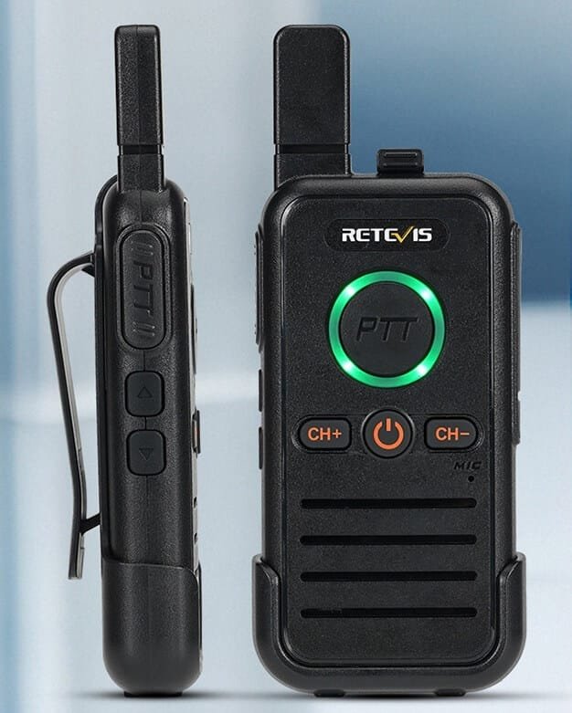 Retevis RB45 is an FRS walkie talkie for users in the USA, Canada, Brazil, etc. and Retevis RB645 is a PMR446 walkie talkies for users in the UK and Europe. Both of them are license free walkie talkies, so it is convenient for beginners. They don’t have many buttons and no complex operations, so the elderly can use them out of the box. They come with a 2-pack at a very affordable price.