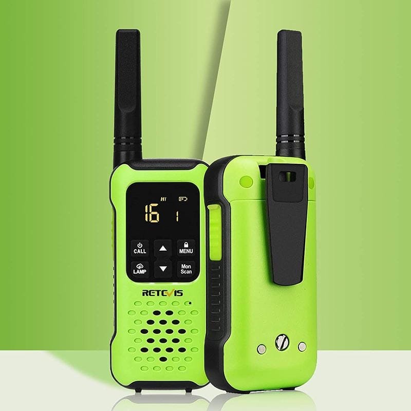 A waterproof IP67 and floats license-free radio, Retevis RT49P is the best choice when you want waterproof radios. Another one is the color. It has the brightly color green. When you suddenly lost your radios in the forest, it is very easy to help you find them.