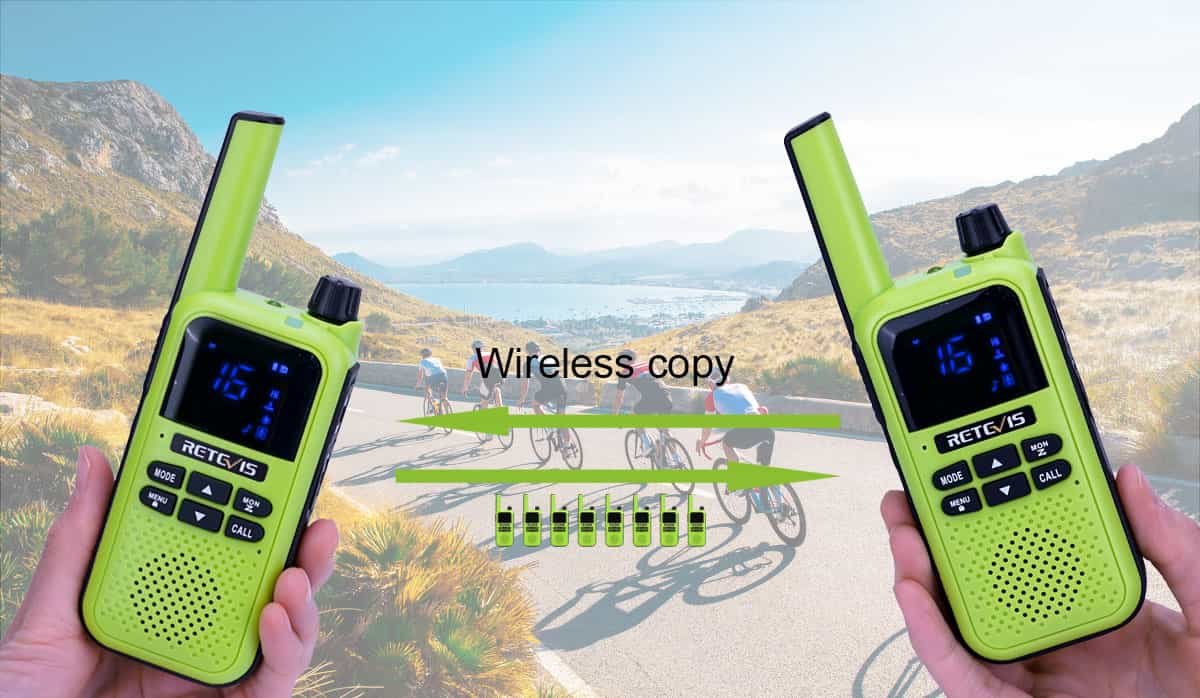 In addition, it has a wireless copy function, under without a computer, you can copy the same frequency from partner to talk each other