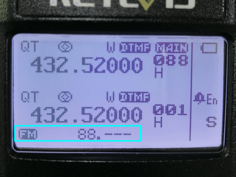 The frequency of the FM radio function can be written via the PC or manually written using the digital keypad of the walkie talkie.