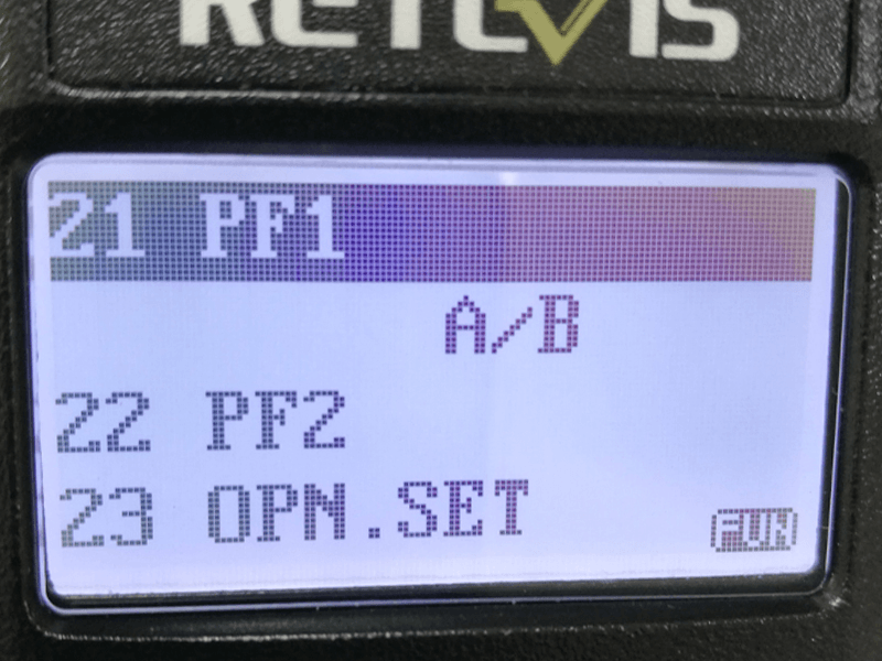 Find the items No.21 and NO.22 on the menu page. You can see “PF1” and “PH2” displayed on the screen. They represent two side buttons. The options for each side button are the same as those for the PC (Including AB /1750/Revert Freq/Optional Signal Code/OFF). After selecting the function you want, press the “F” button to confirm.