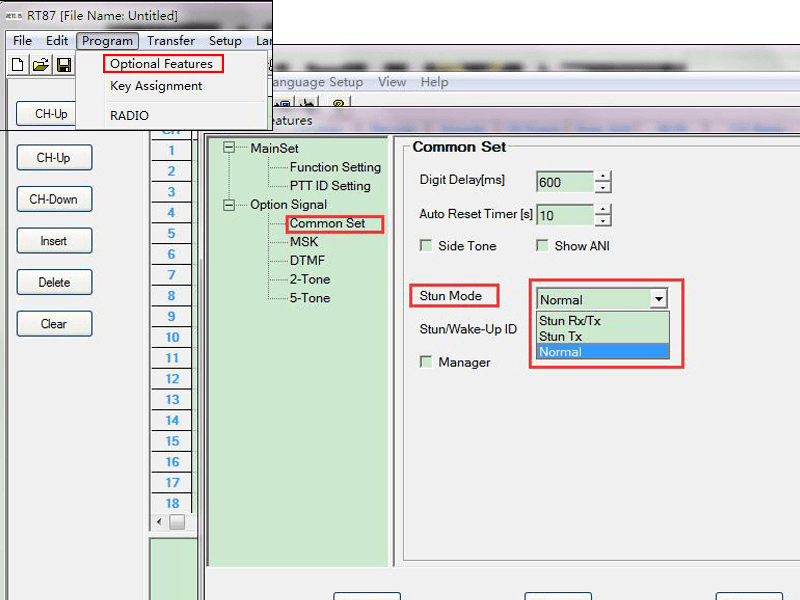 Open the software and find “Stun Mode” in the “Optional Feature”. There are three Stun Modes can be selected: Staun Rx/Tx, Stun Tx and Normal.