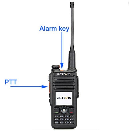 4.Press PTT and alarm key(on the top) , at the same time, turn on the radio, the indicator light blinks.