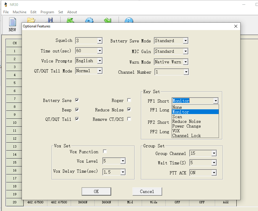 However, the functions on the side keys can be programmed on the software. The programming cable is J9131P, the same as HD1 and RT29 popular radio. And you can set up your radio on the software. Look at this screenshot of the radio. You can also download the software from our website.