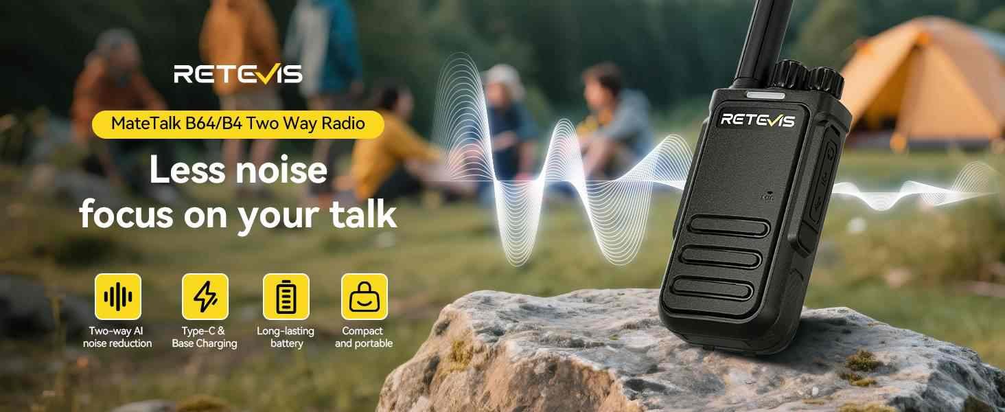 Retevis MateTalk B4 two-way radio with AI-powered digital two-way noise cancellation. Offer a solution that goes beyond traditional devices.