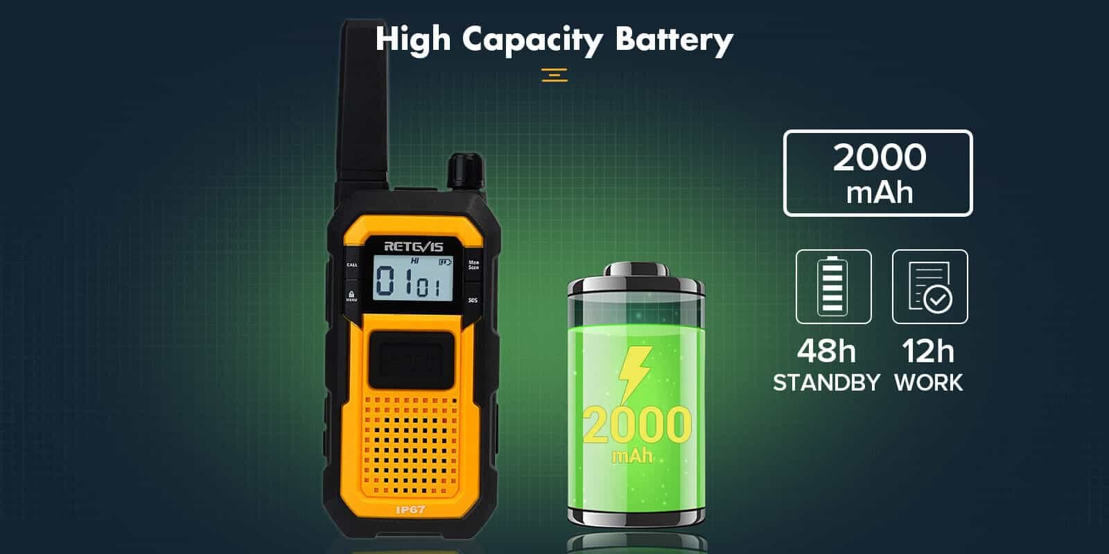 There is an issue that the workers are impossible to charge the walkie talkie always, so A big battery is necessary, RB48 is 2000mah battery capacity, it keeps a long time communication is no problem