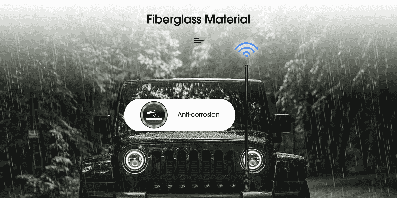 [1]. This rugged antenna is built to withstand complex off-road use scenarios due to its durable fiberglass material