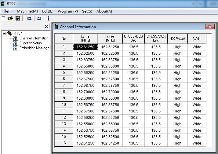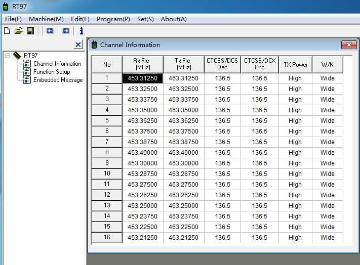 A: RT97 default has 16 channels. Please check sheet as below: UHF