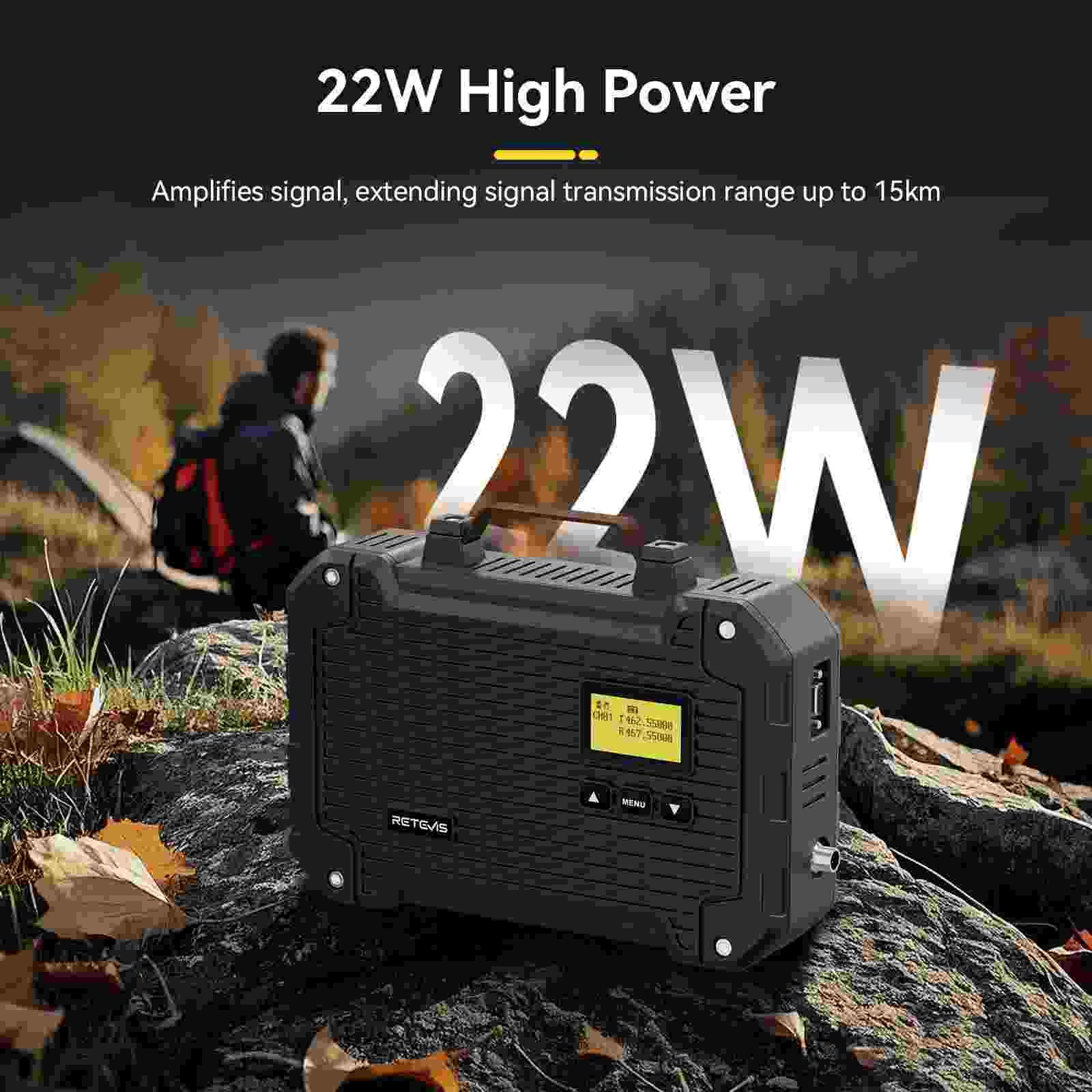 Retevis RT97L High-Power Repeater, a cutting-edge next-generation relay station, boasts an impressive 22W ultra-high output power. For industries demanding reliable communication across vast, challenging terrains, the RT97L High-Power Repeater emerges as a game-changing solution.