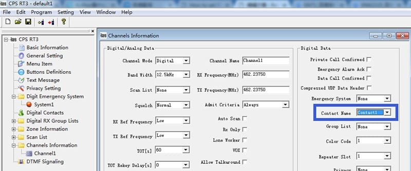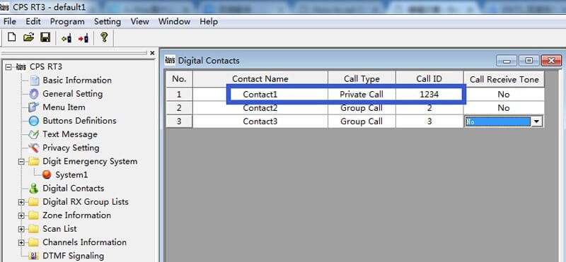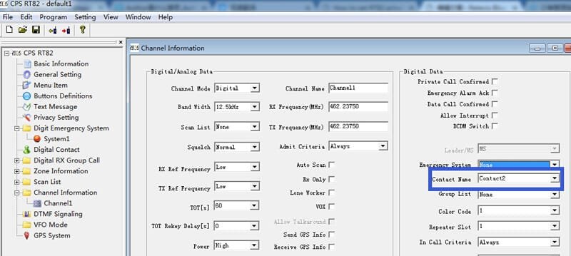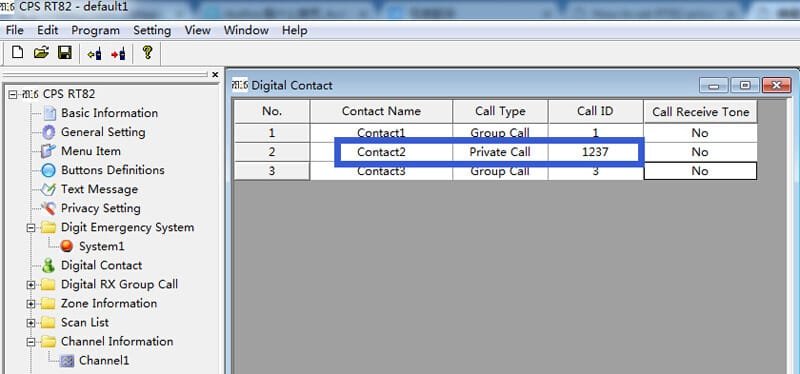 2.set Digital Contact in Radio RT82