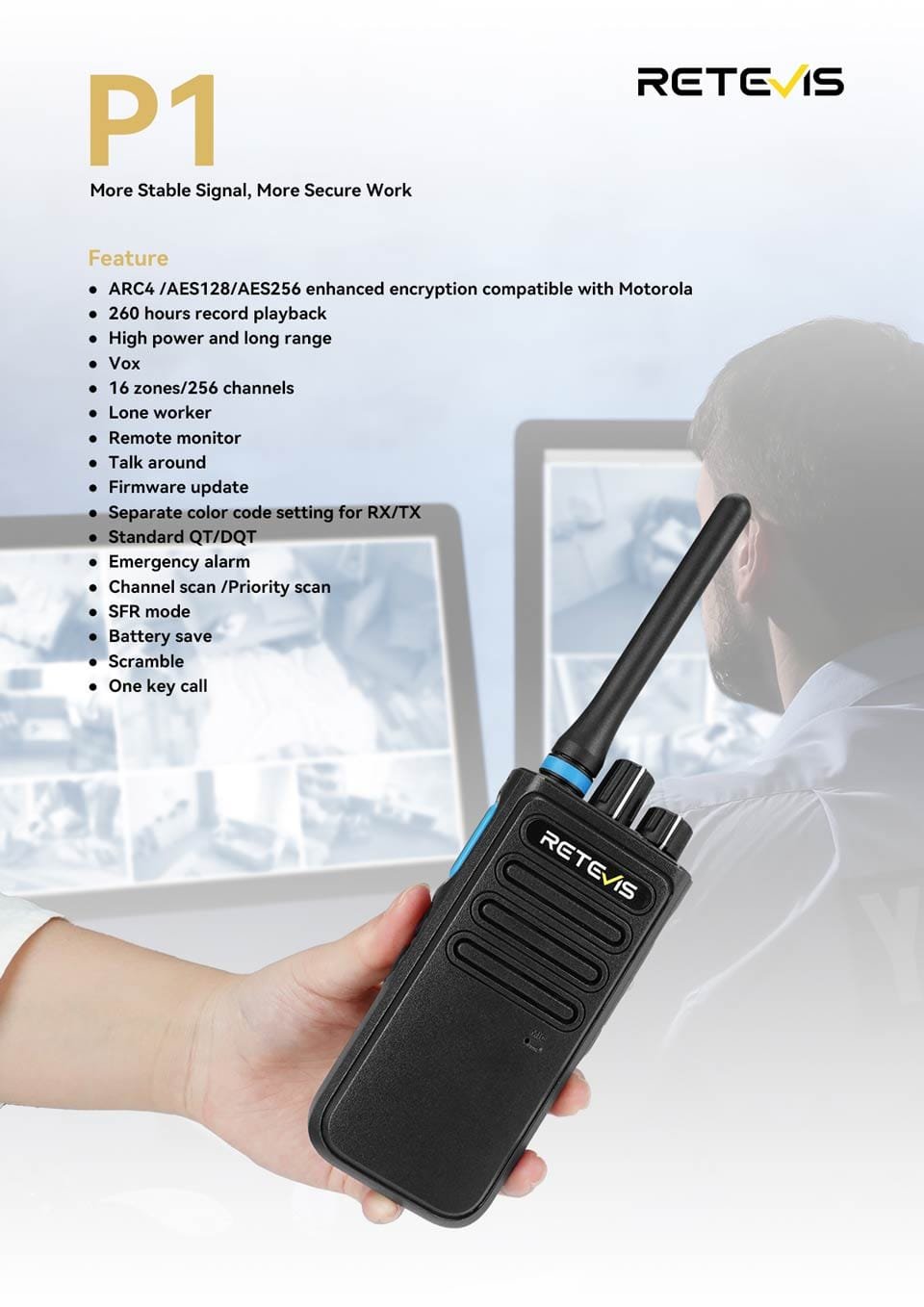 P1 Long Range Superhet AES256 UHF DMR Radio