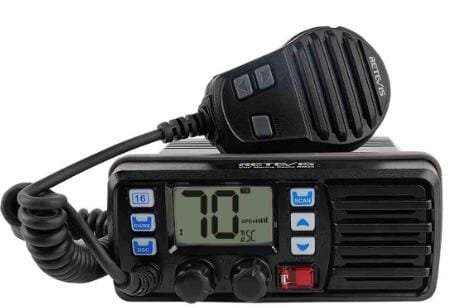 This type of radio is permanently installed on your boat and connected to an external antenna. It derives its power from the boat’s battery, so your operating time is practically unlimited. All fixed-mount radios are limited to 25 watts of transmitting power bay law. Such as retevis RM20. It is a 25W Fixed Mount Marine Radio, with IP67, NOAA, GPS and high volume.