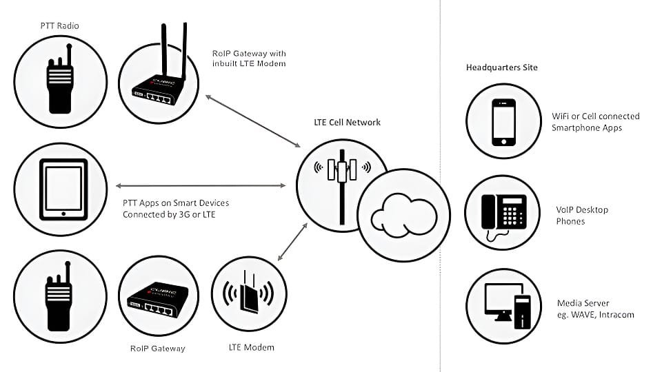- Radio to radio using analog transmissions.