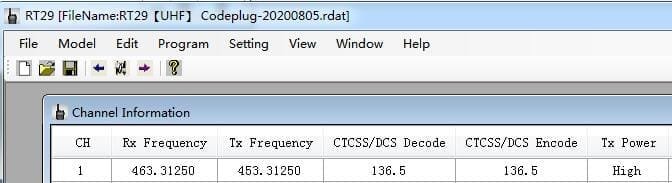 RT29                                                                                                                                                                                                                                                                        5.After setting the channel and frequency you want to use, write to the radio.